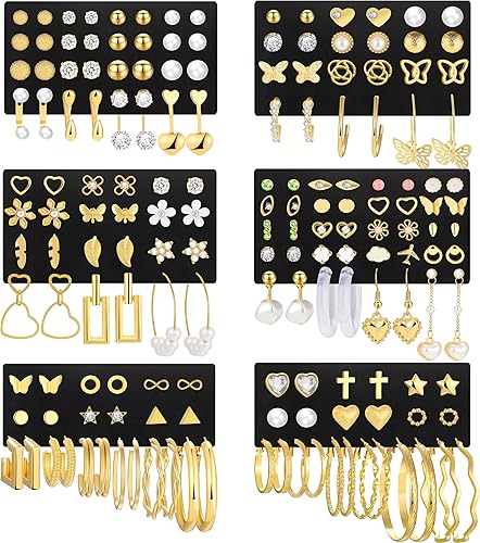- Gold Stud Hoop Earrings: Totally 84 pairs of earrings to choose from,including stud earring sets, hoop earring sets, and drop dangle earring sets.These earrings match all your outfits, whether formal or casual, making you new look every day.